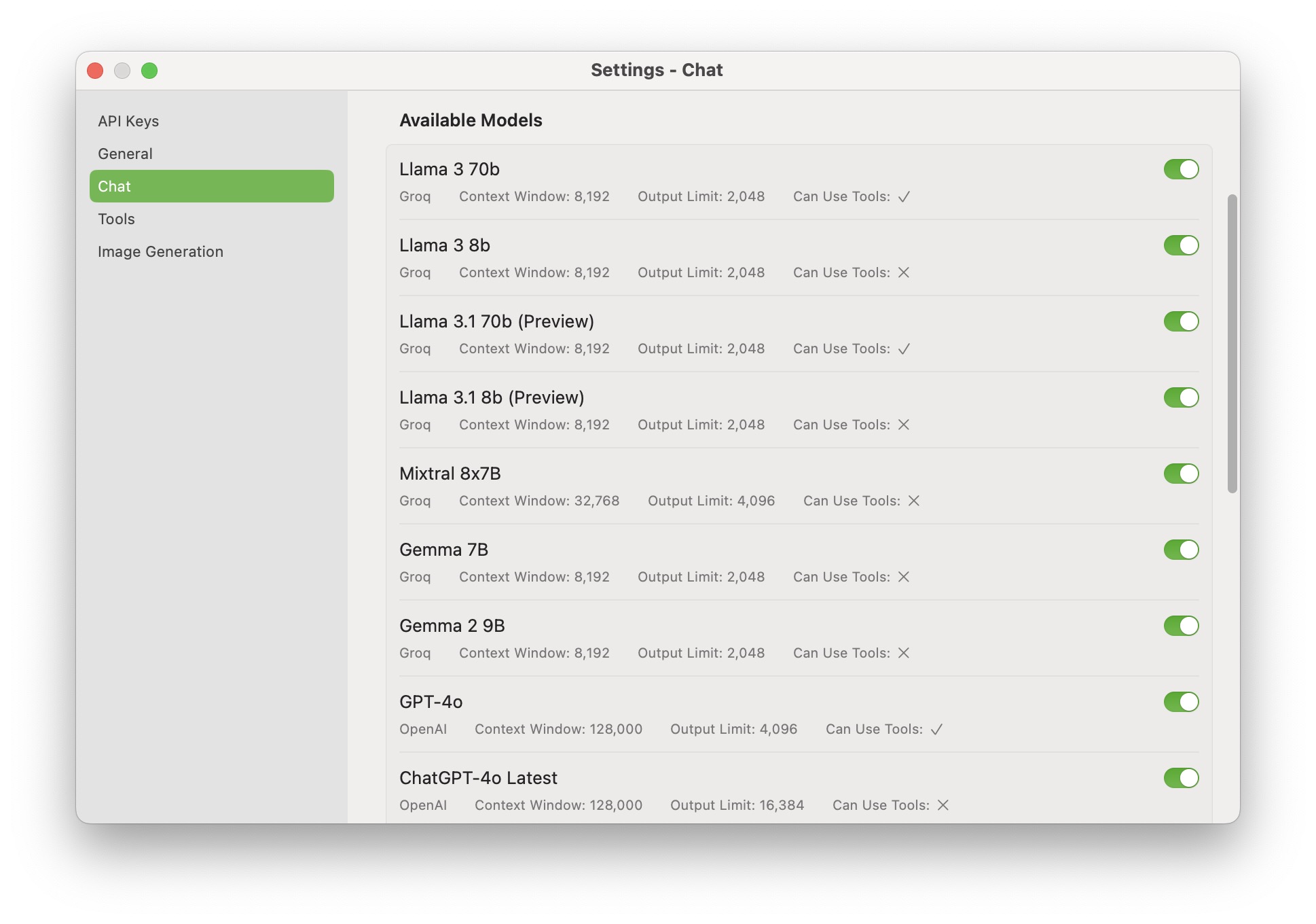 * **Tool Usage**: Indicates whether the model can utilize additional tools.