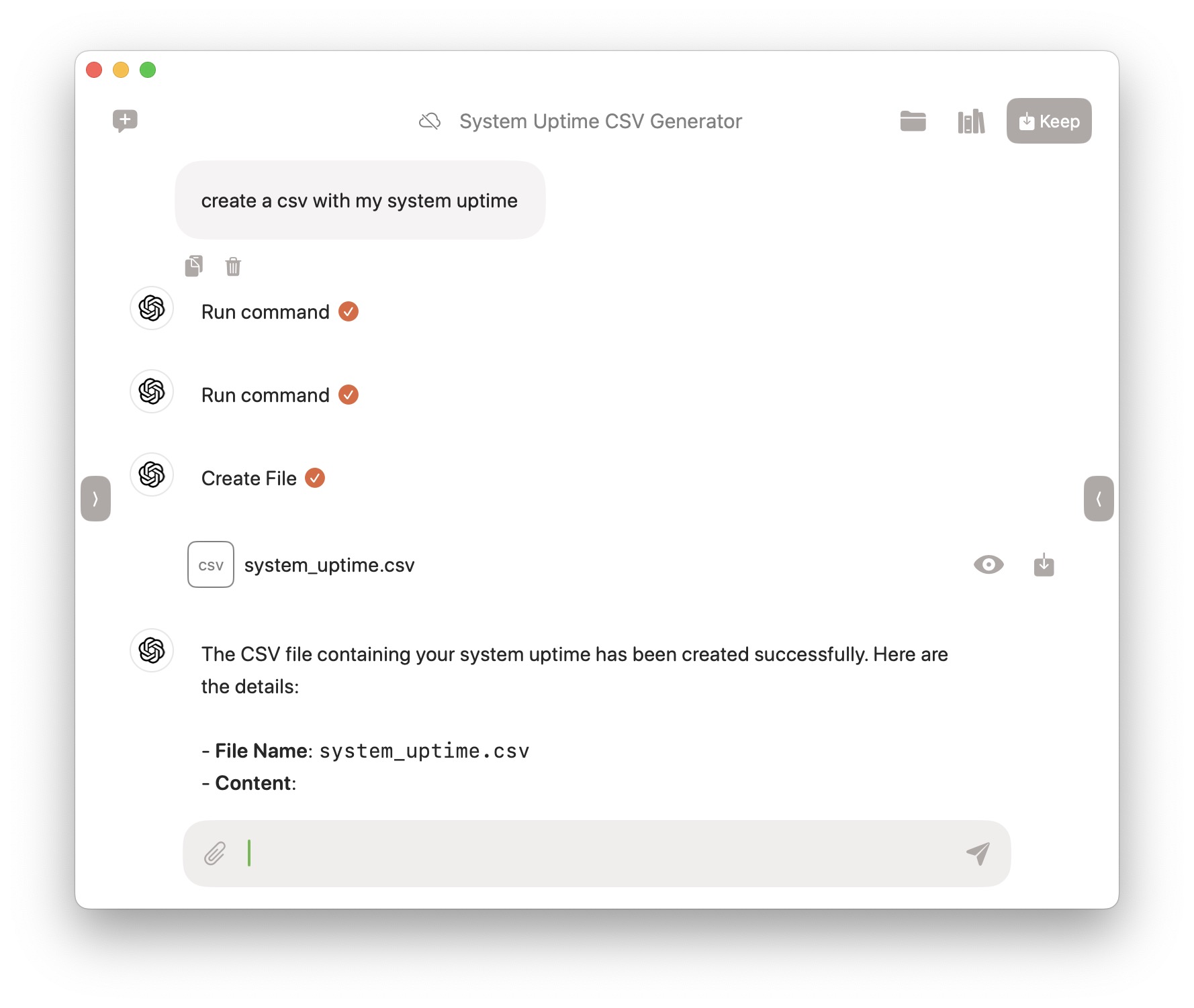 Models that support tool calls can extend their capabilities beyond just chatting. Tools will appear as separate messages in the chat window, displaying a preloader while the tool is being executed and an orange checkmark when the execution is complete.
